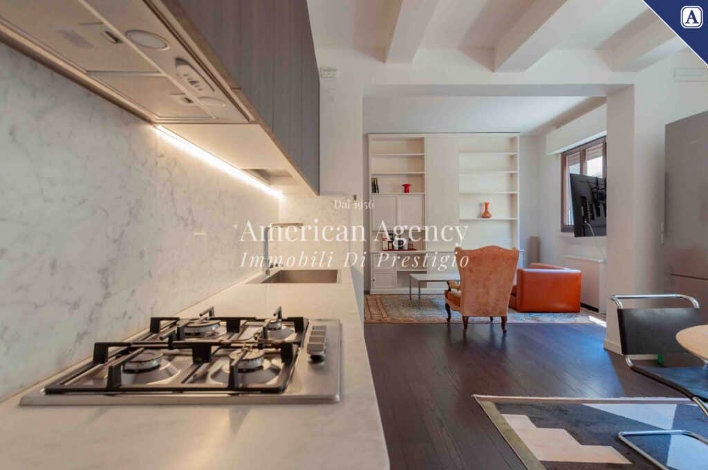 In una delle zone più prestigiose di Firenze, nei pressi di Porta Romana, proponiamo in affitto un appartamento di lusso finemente ristrutturato, situato al primo piano (senza ascensore) di piccola palazzina storica. L’immobile si apre su un’ampia zona living con angolo cottura su misura, dotato di piano in marmo e elettrodomestici di ultima generazione. La disposizione include due camere matrimoniali spaziose, ciascuna con armadiature su misura, e due bagni completi con rifiniture moderne. La seconda camera si distingue per una raffinata parete vetrata affacciata su una silenziosa corte interna, mentre un resede esclusivo, accessibile direttamente dalla camera, offre uno spazio esterno riservato, ideale per momenti di relax.