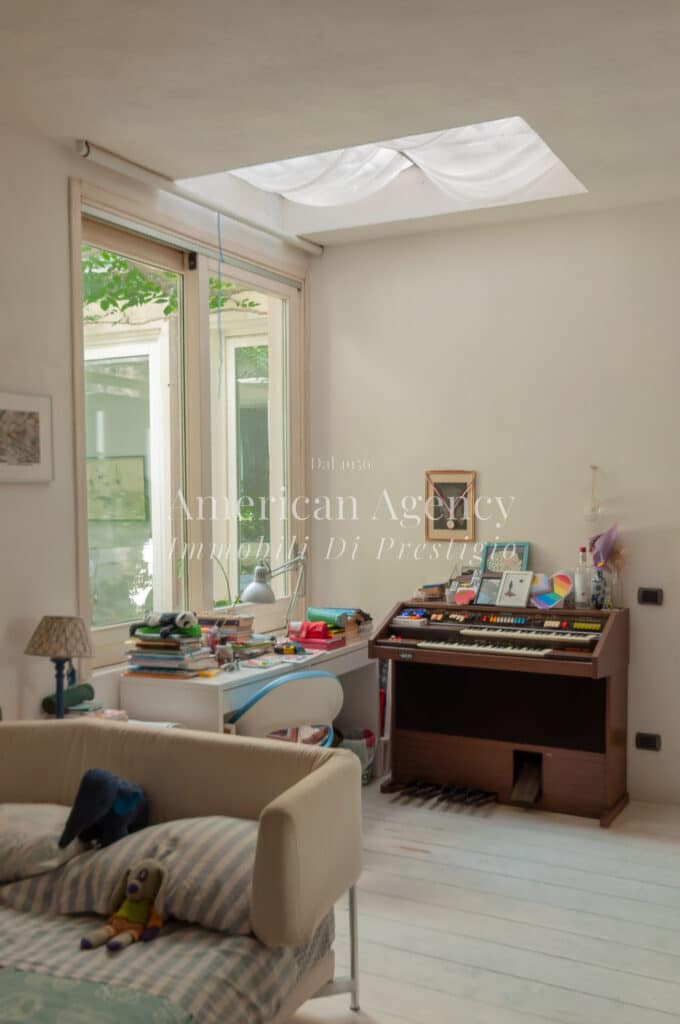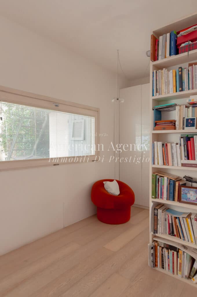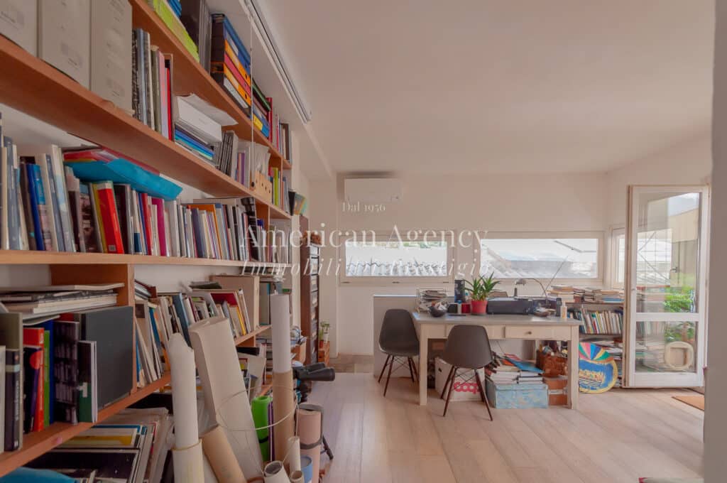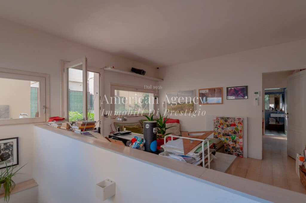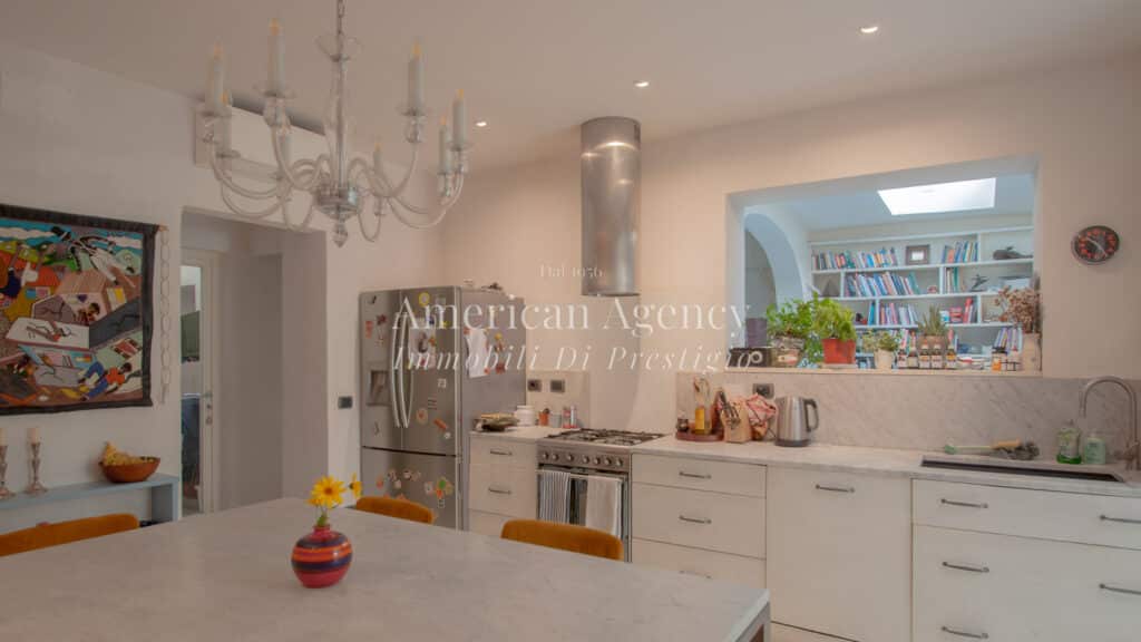 La cucina abitabile su misura unisce funzionalità e design, diventando il luogo ideale per pranzi conviviali o cene in famiglia. Sullo stesso piano trovano spazio due camere da letto, uno studio riservato, due bagni (uno completo e uno di servizio) e una comoda lavanderia.