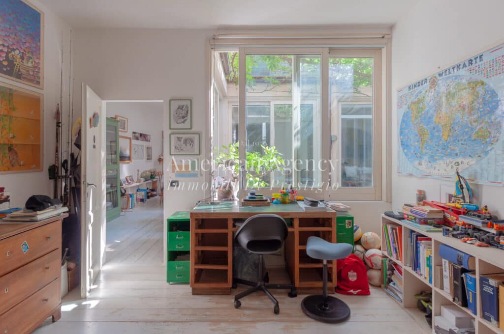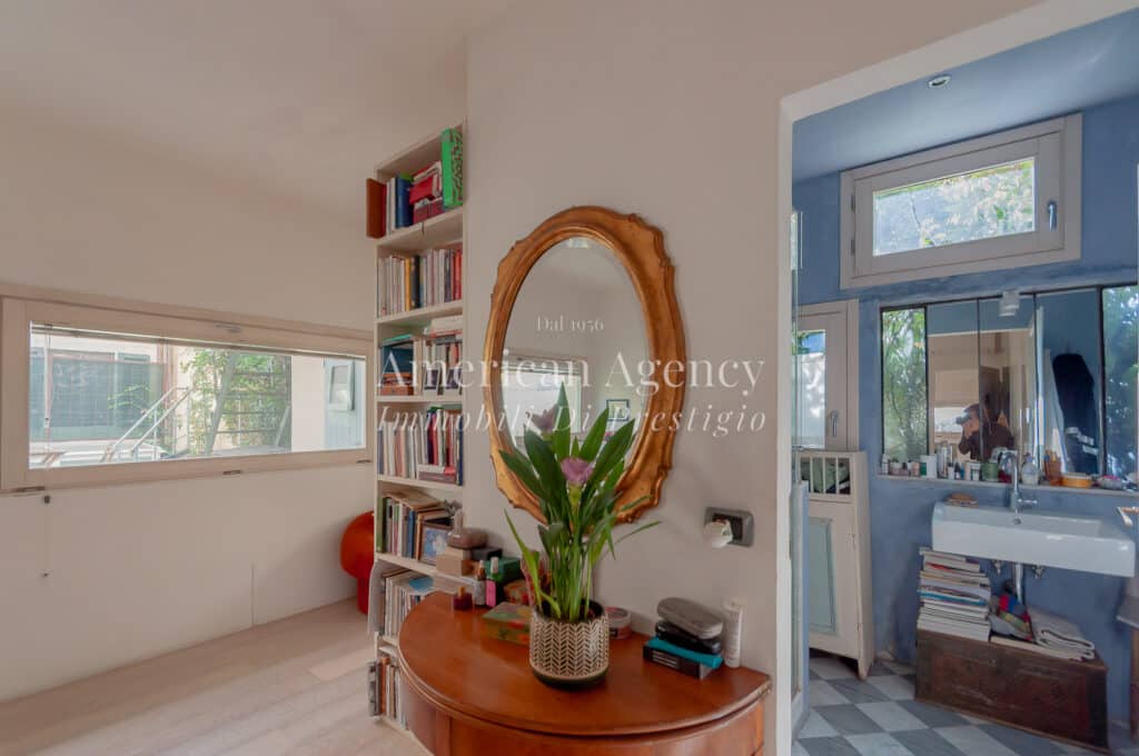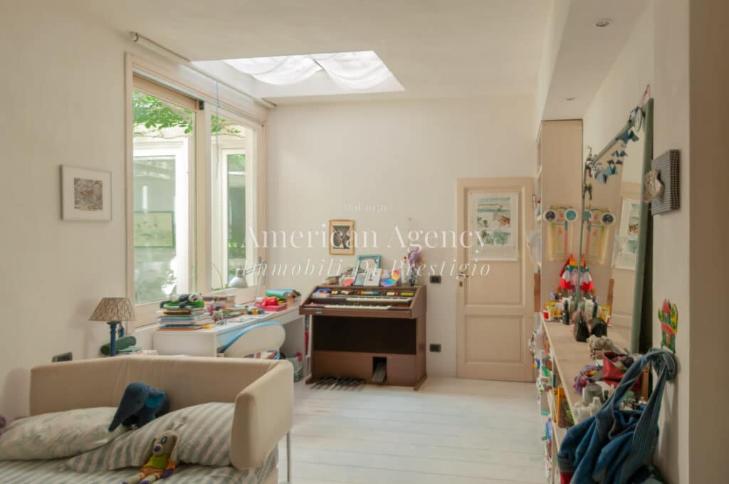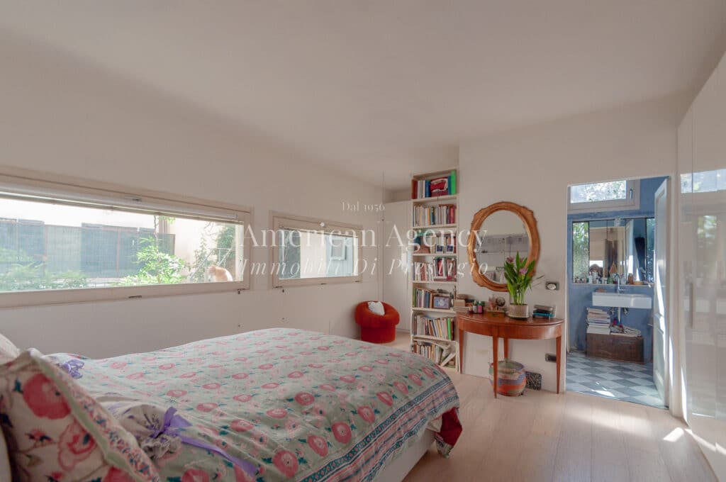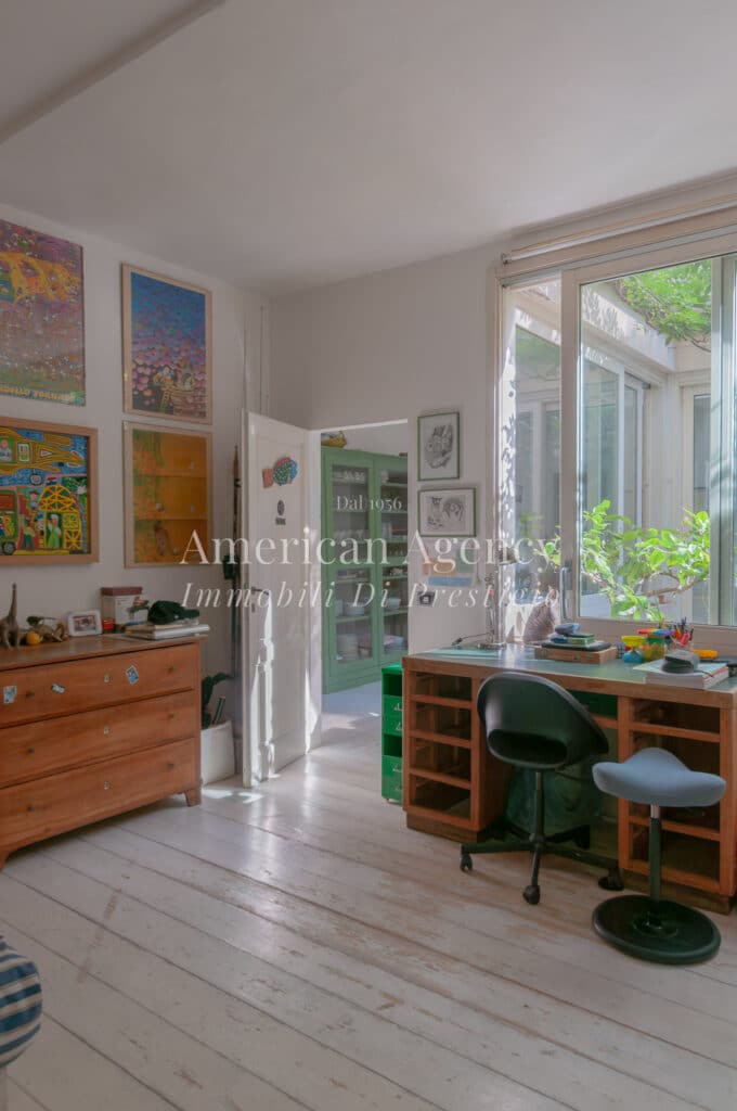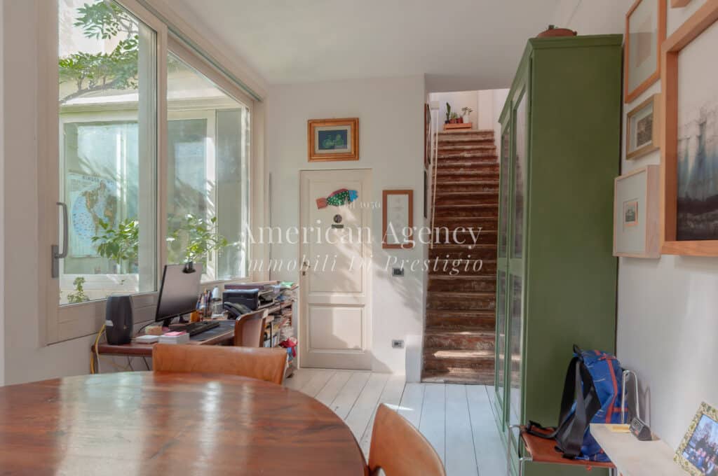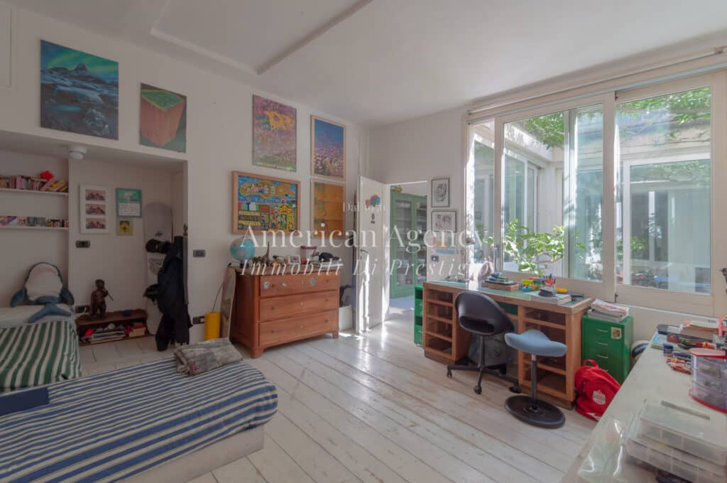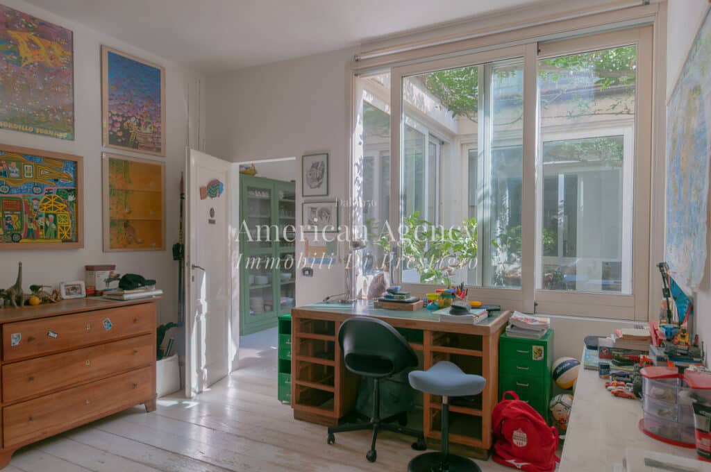Salendo al piano superiore, la camera padronale con bagno ensuite e un secondo studio offrono un ambiente intimo e raccolto, perfetto come zona notte privata o come area dedicata al lavoro e alla lettura. La disposizione degli ambienti rispetta un equilibrio perfetto tra comfort e funzionalità, ideale per famiglie che cercano una casa spaziosa o per chi desidera un immobile di rappresentanza nel centro storico di Firenze.