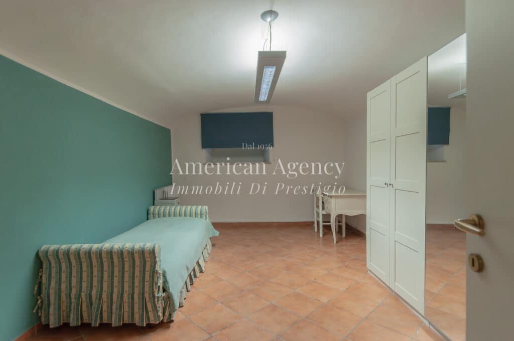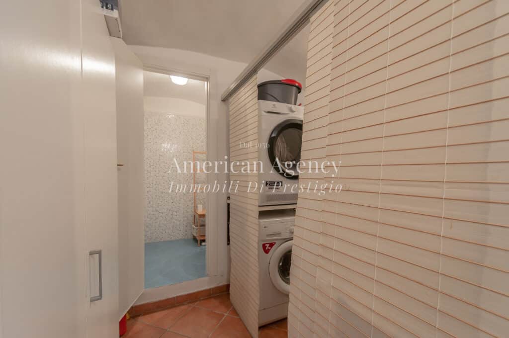 Una scala interna conduce al piano seminterrato dove si sviluppa una seconda area della casa composta da una camera da letto con bagno, ideale come zona ospiti o per personale di servizio, un locale lavanderia e un ulteriore ampio vano con armadiature ed area office.