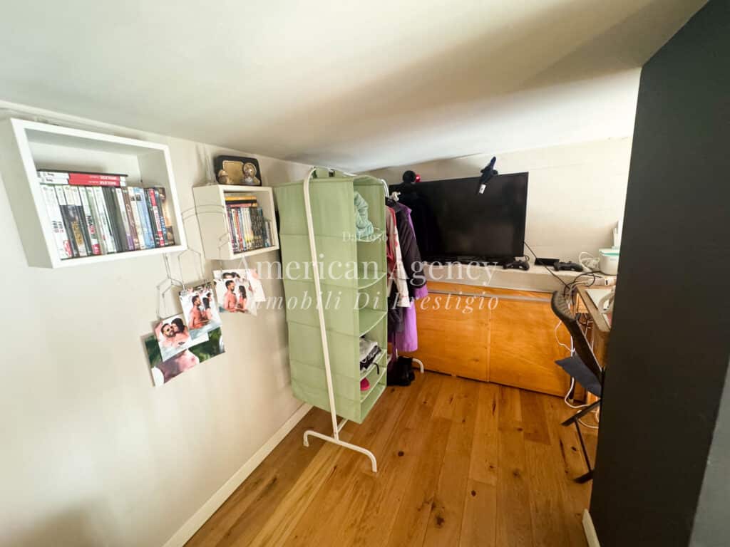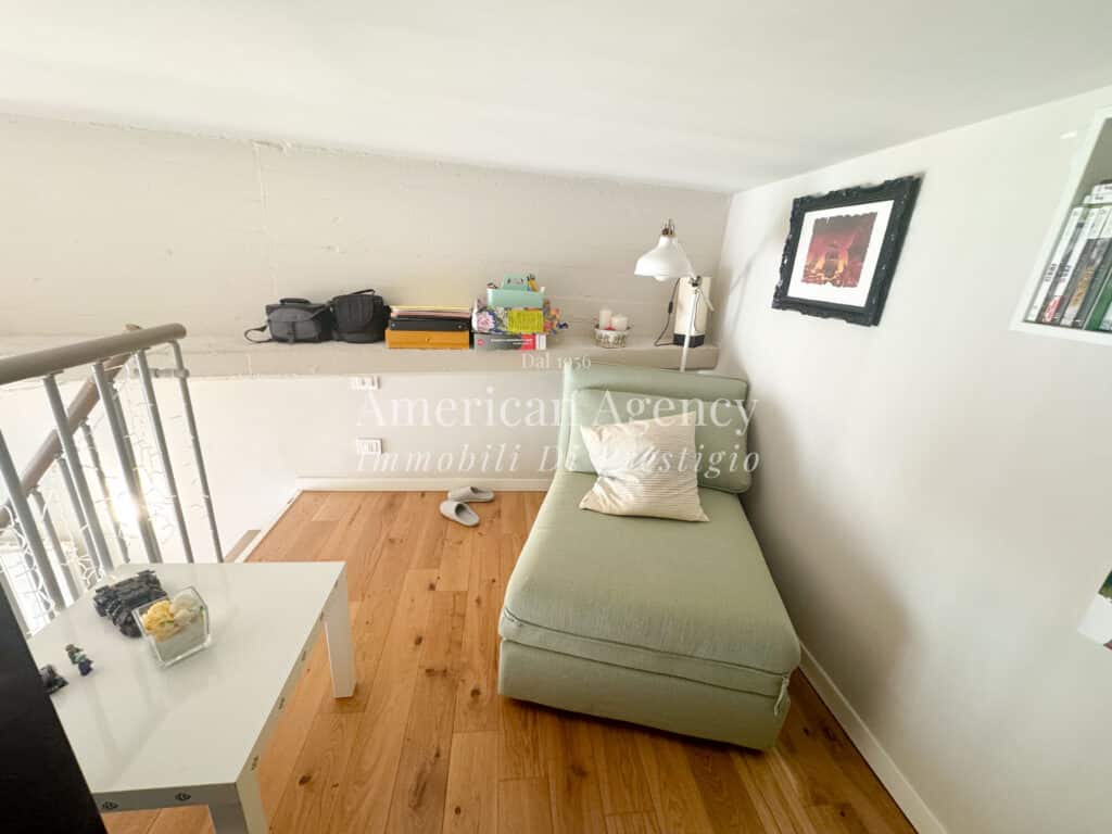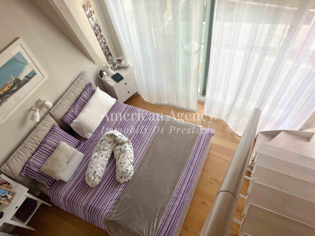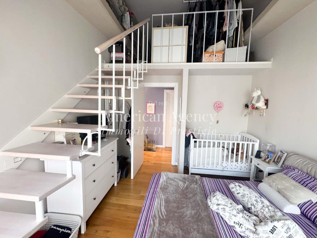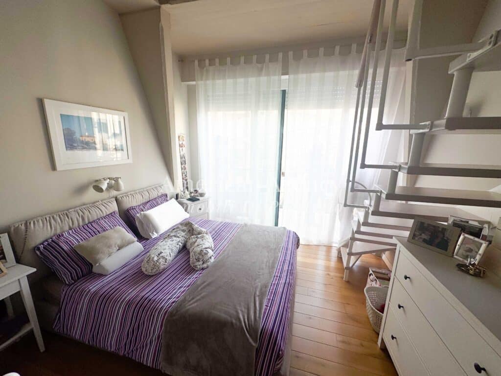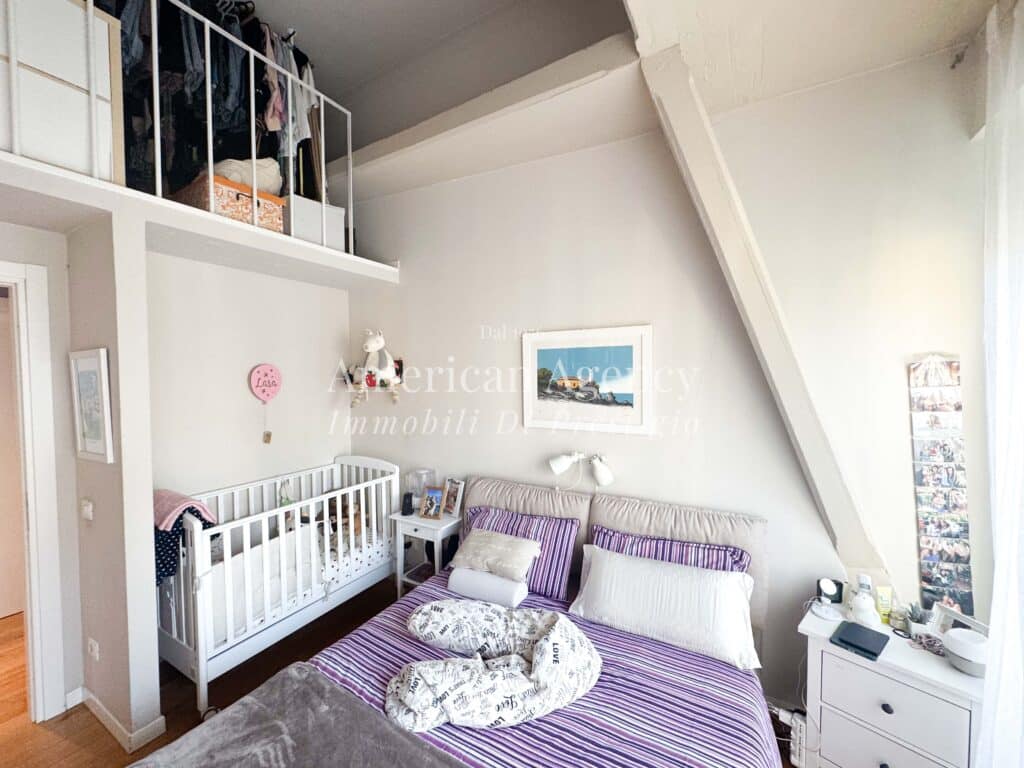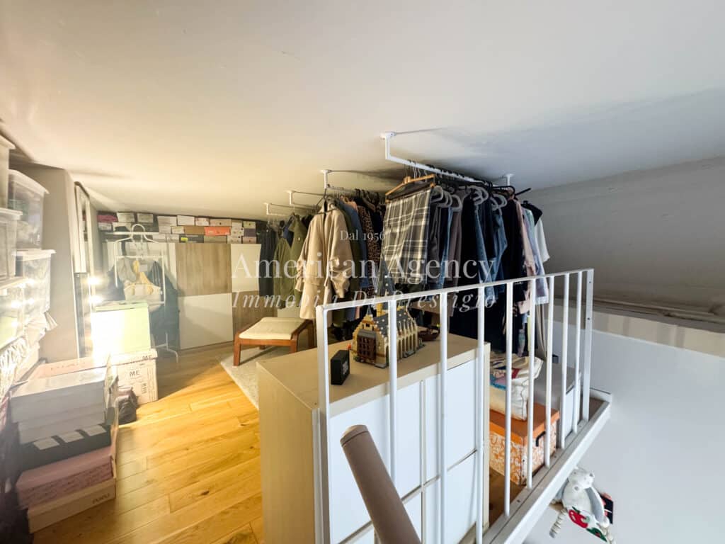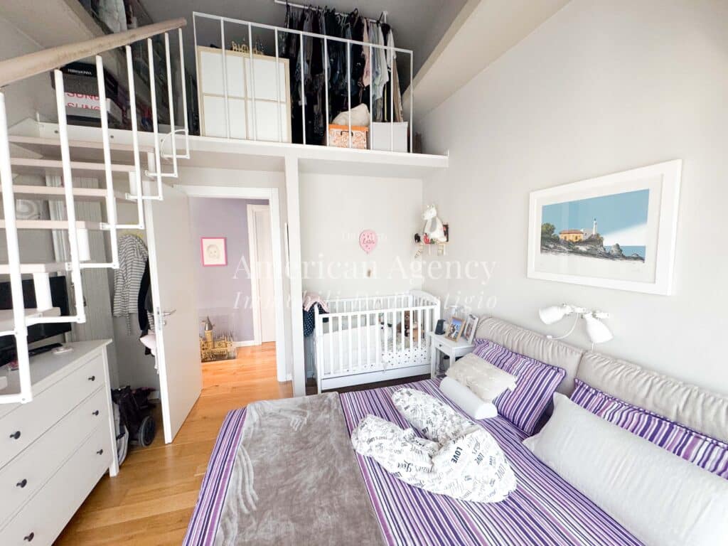 Un comodo disimpegno accompagna alla zona notte composta da una camera da letto luminosa e accogliente, arricchita da un ampio soppalco adibito a cabina armadio, molto spazioso e funzionale.
