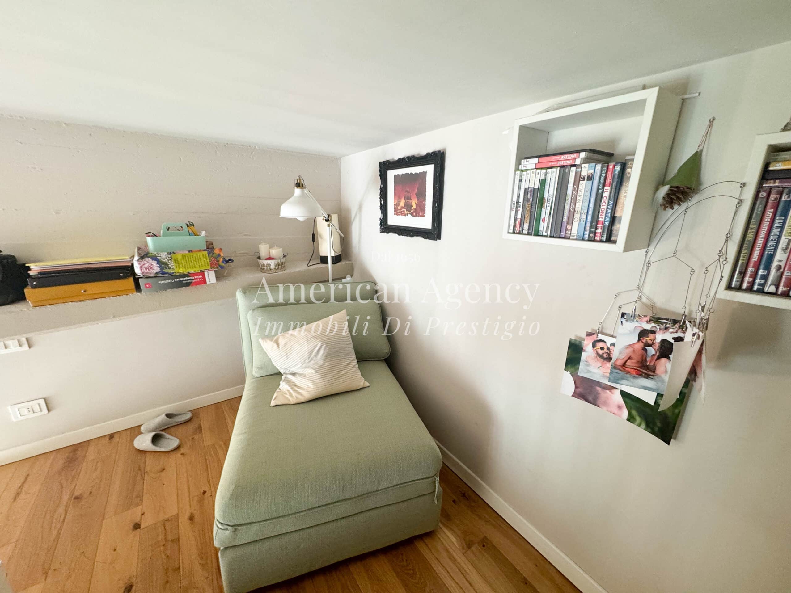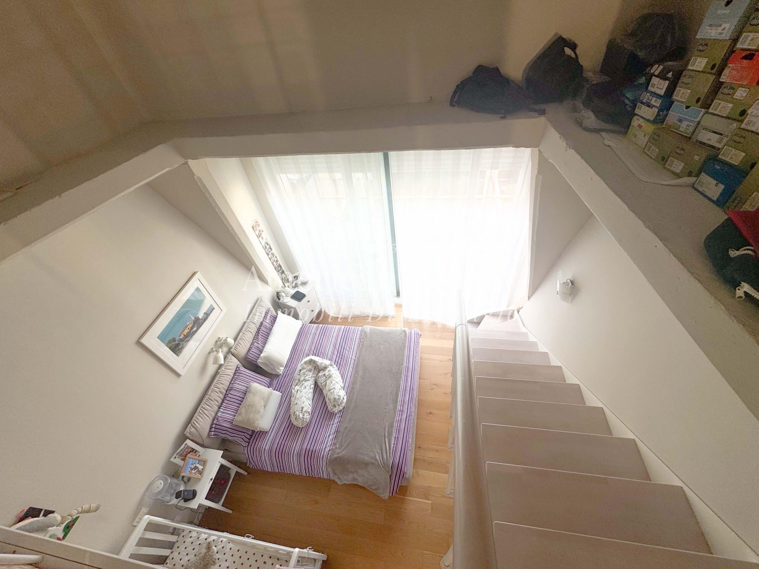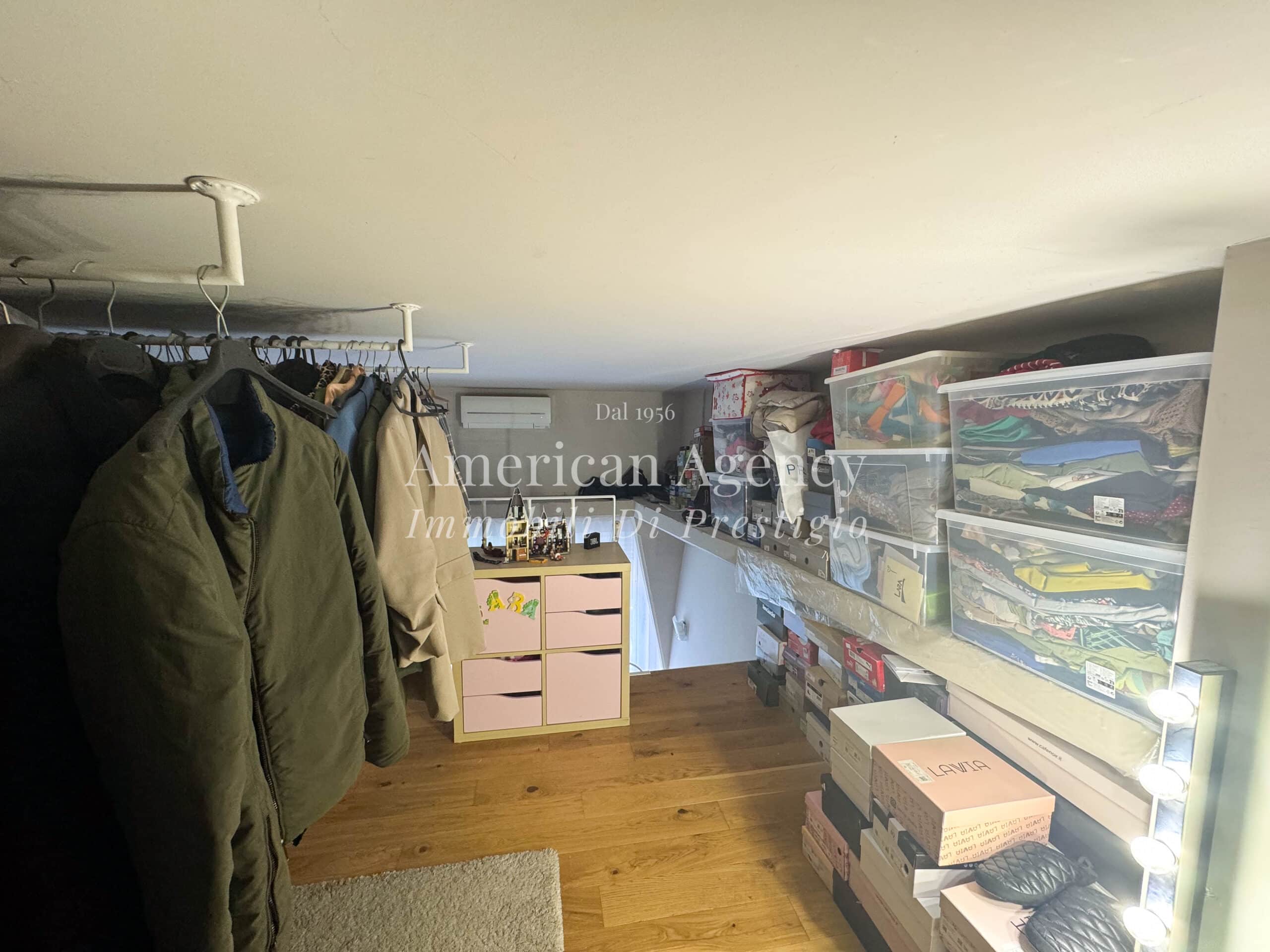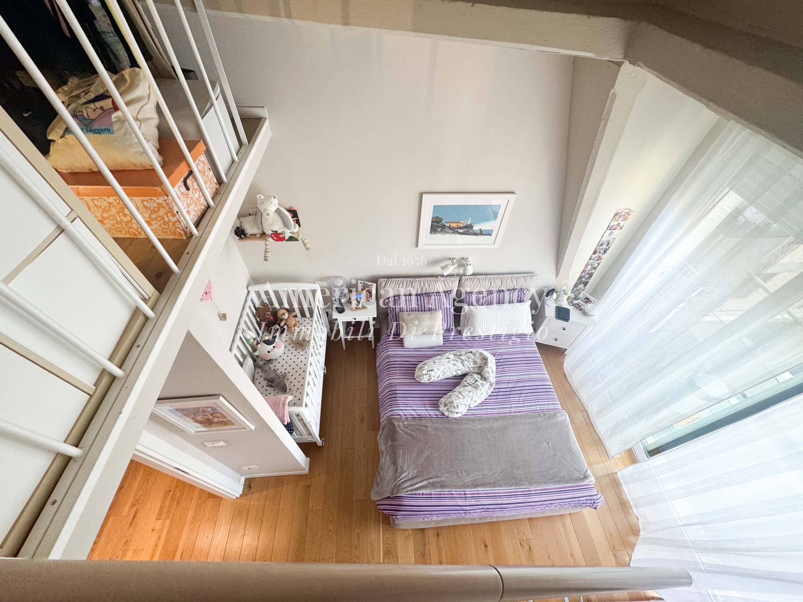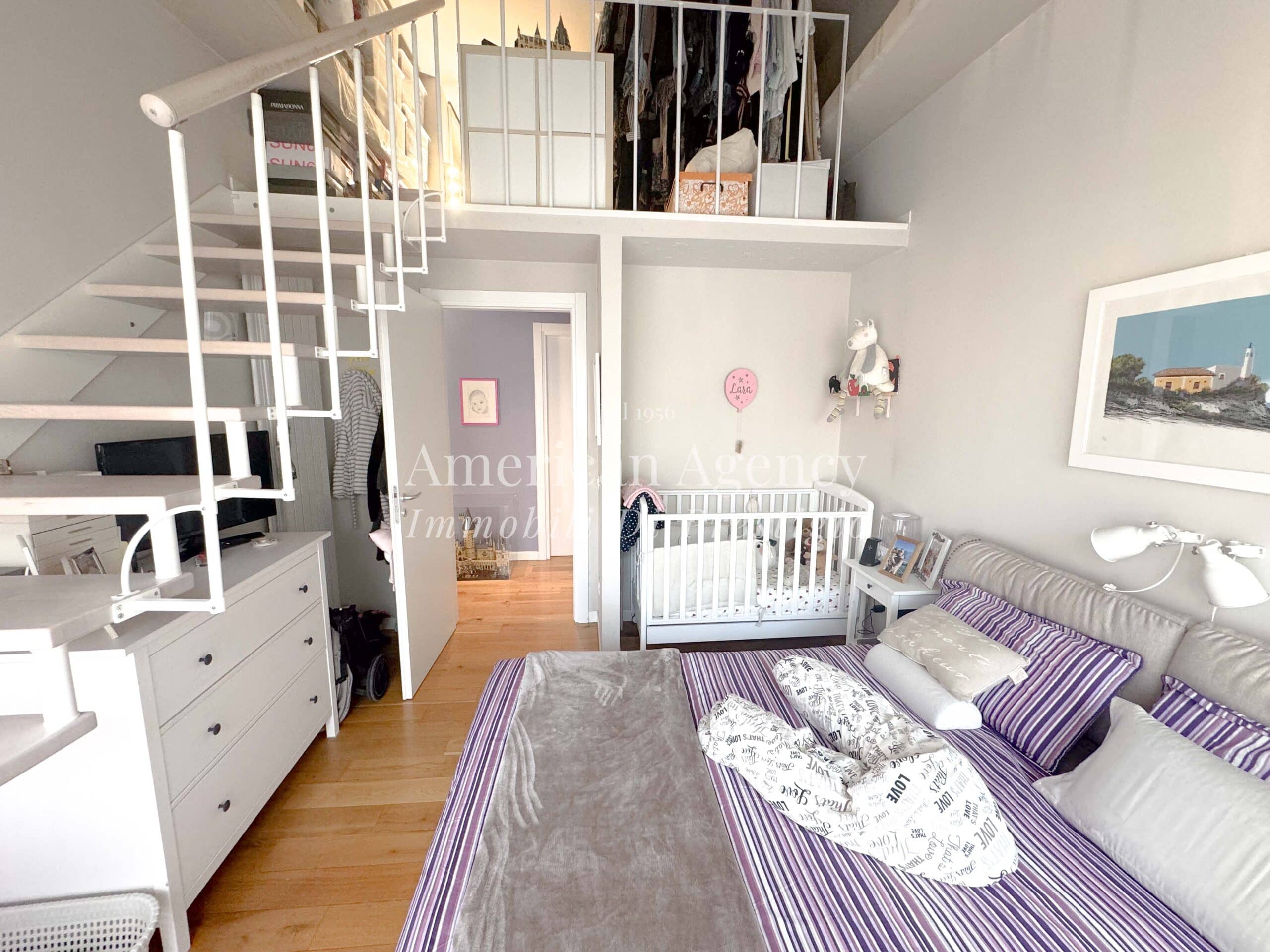 Un comodo disimpegno accompagna alla zona notte composta da una camera da letto luminosa e accogliente, arricchita da un ampio soppalco adibito a cabina armadio, molto spazioso e funzionale.