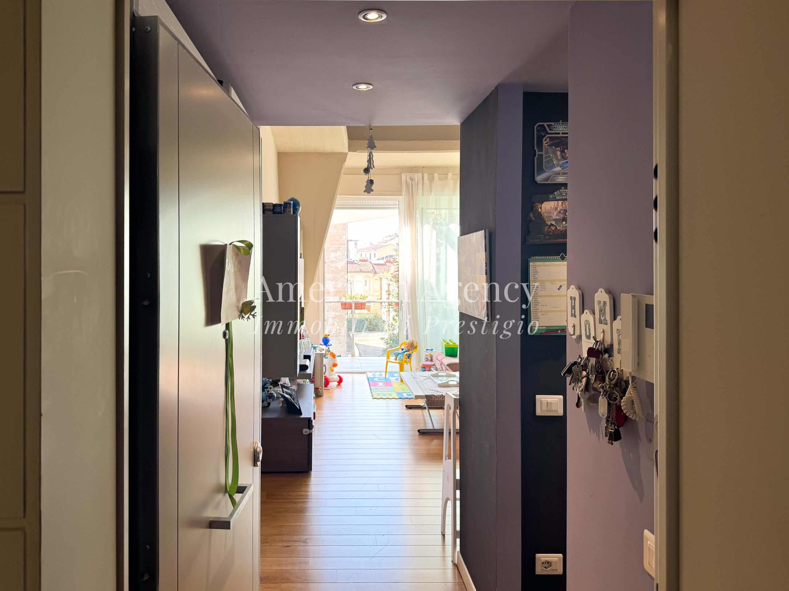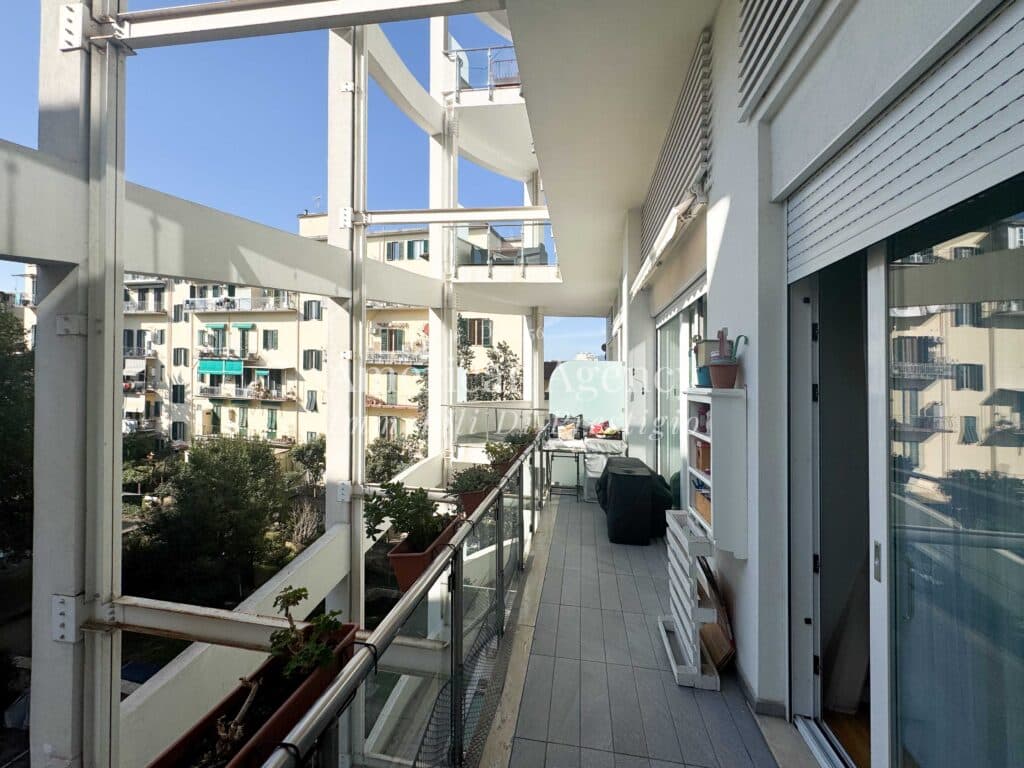 Sia la zona giorno che la camera da letto sono finestrate e affacciano su un ampio balcone abitabile, uno spazio esterno ideale per momenti di relax che garantisce un’eccellente luminosità naturale durante tutto l’arco della giornata.