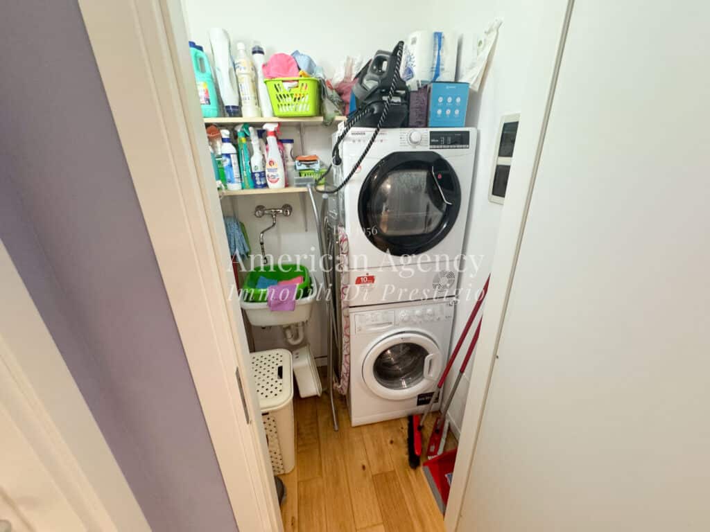 Completa la proprietà il bagno e uno sgabuzzino adibito a lavanderia, pratico e ben organizzato per ottimizzare gli spazi della casa.