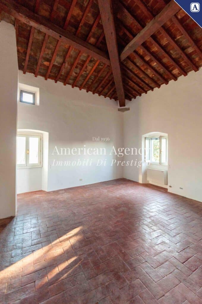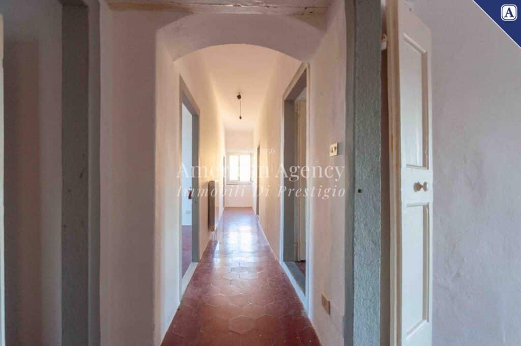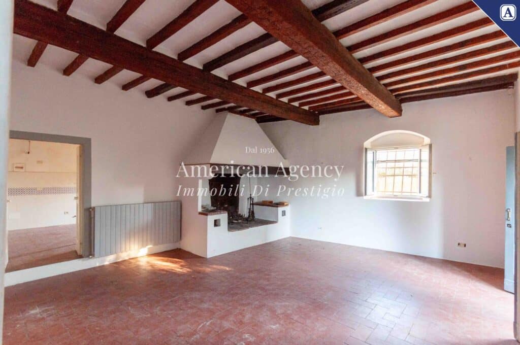 Immersa nel cuore della splendida campagna toscana, questa affascinante casa colonica, libera su quattro lati, rappresenta un’opportunità unica di vivere in un angolo di storia e bellezza. Con una superficie totale di 349 mq (di cui 60 mq dedicati a laboratorio) e un terreno circostante che include un giardino con resede di circa 50 mq e una porzione agricola di 846 mq, questa proprietà offre ampi spazi e una posizione panoramica da sogno sulle colline circostanti. La casa, parte di un complesso che comprende anche un fienile e un altro immobile, è caratterizzata da dettagli storici originali, tra cui splendide cornici in pietra serena, caminetto in pietra, soffitti con travi a vista e pavimentazione in cotto, il tutto mantenuto intatto e valorizzato nel corso degli anni. La proprietà, da ristrutturare, offre un grande potenziale grazie alla possibilità di personalizzare gli ambienti secondo le proprie esigenze. Al piano superiore, le ampie altezze delle stanze (fino a 5,10 m) permettono di valutare l’inserimento di eventuali soppalchi, per ampliare ulteriormente lo spazio abitabile. Al piano terra, l’ingresso principale si apre su un’ampia aia in pietra, da cui si accede a una zona di 60 mq attualmente adibita a laboratorio, a una spaziosa zona giorno con salotto dotato di caminetto, cucina abitabile e un grande pranzo con forno in pietra. Salendo al piano superiore, si trovano sei ampie camere, che garantiscono una grande luminosità e un’atmosfera di grande fascino. La casa gode di una splendida esposizione, con affacci panoramici sulle colline e sulla natura circostante. La proprietà non è isolata e facilmente raggiungibile, offrendo così il perfetto equilibrio tra tranquillità e comodità. Due cantine completano l’offerta, rendendo questa proprietà ideale per chi cerca una residenza di charme, in una posizione strategica, immersa nella bellezza della Toscana. Un’opportunità da non perdere.