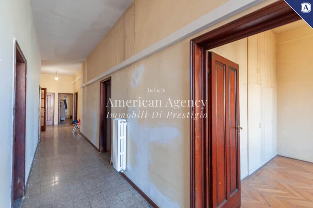 Ampio e luminoso appartamento situato al terzo piano di un edificio storico del 1935, dotato di ascensore e parte di un condominio ben mantenuto. La superficie catastale è di 232 mq e comprende 7 vani, tra cui cucina, servizi igienici e balconi tergali. Grazie alle ampie finestre e ai doppi affacci, l’appartamento gode di un’ottima illuminazione naturale. Al piano seminterrato dispone di tre locali adibiti a cantina. La proprietà include un box auto con ripostiglio, accessibile da una rampa carrabile, e una quota parte dell’ex alloggio del portiere. L’immobile è da ristrutturare, offrendo ampie possibilità di personalizzazione. È regolare urbanisticamente e liberamente commerciabile.