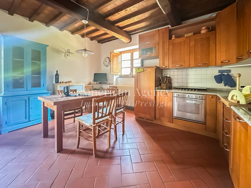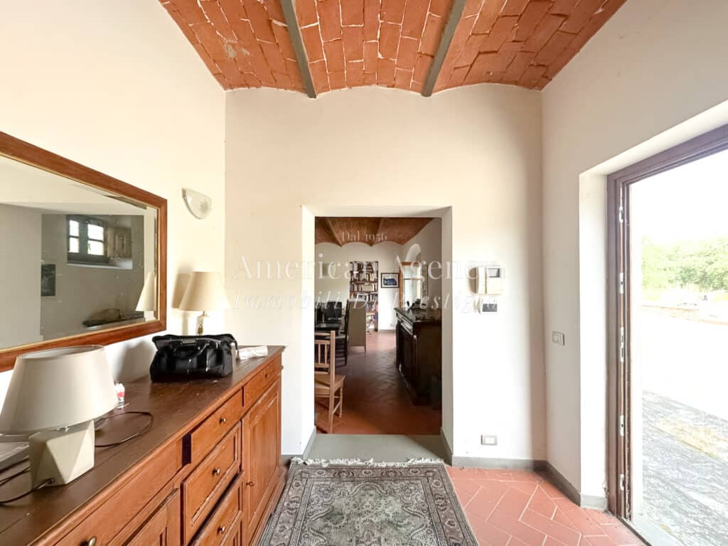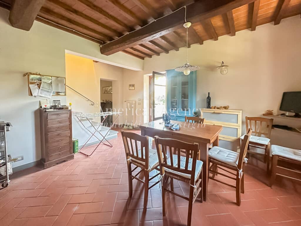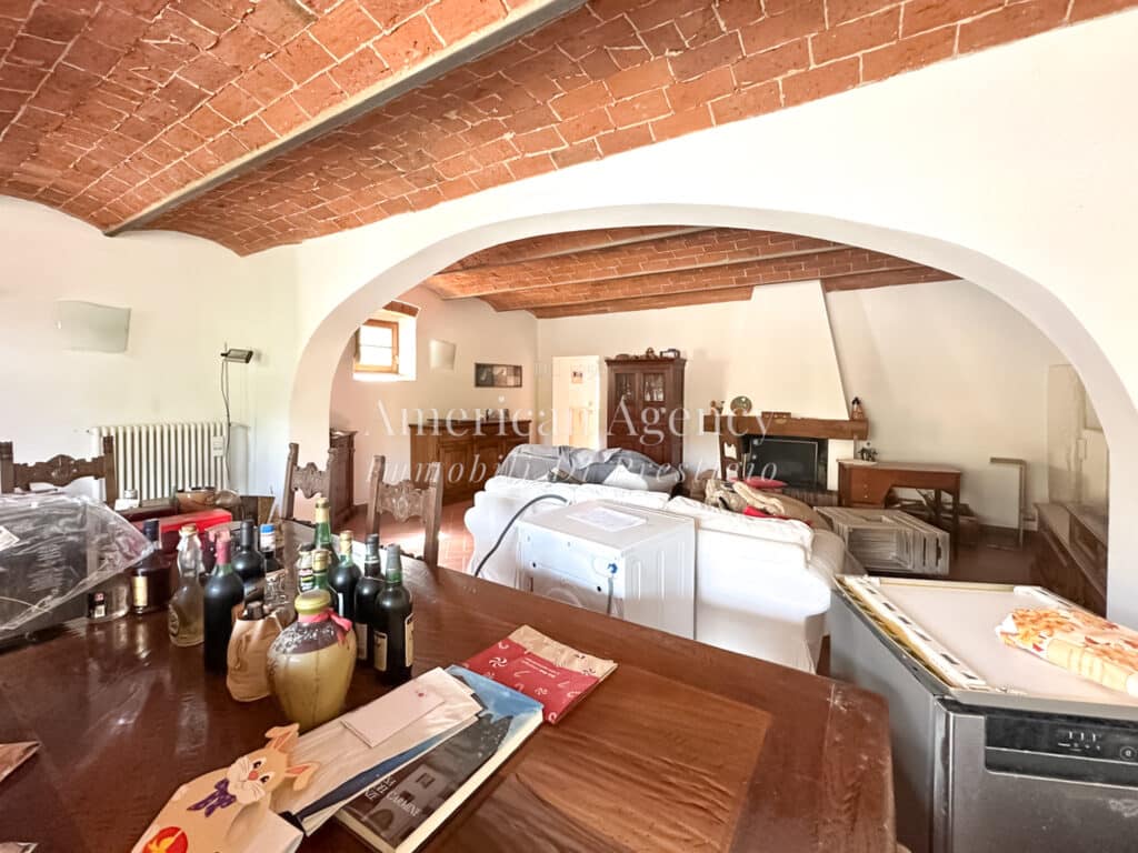 La casa è distribuita su due livelli. Al piano terra si trovano un ampio ingresso, un soggiorno doppio con camino e soffitti a volta, una cucina abitabile con dispensa, una lavanderia finestrata e un bagno di servizio. Il primo piano ospita quattro camere da letto, due bagni, un ripostiglio e un soppalco attualmente adibito a studio. È presente anche una piccola mansarda.