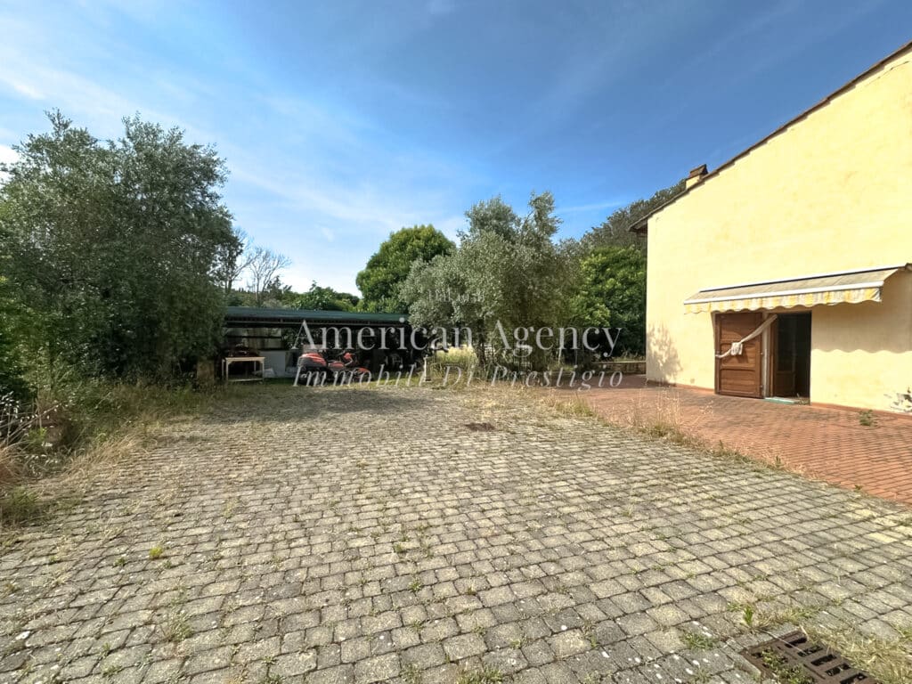 Il terreno, completamente piano, offre diverse possibilità di utilizzo: giardino, orto, area relax o eventuale zona piscina. Sono presenti inoltre cinque posti auto.